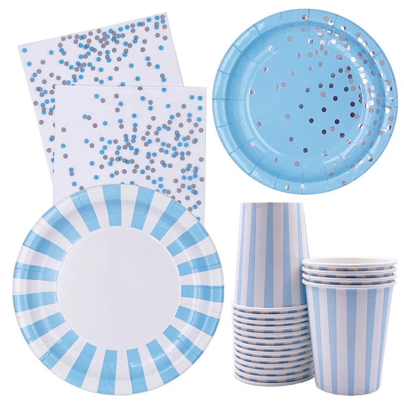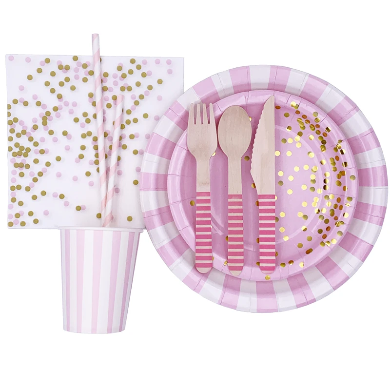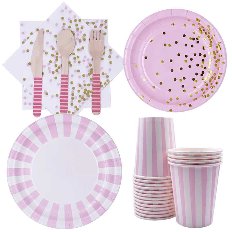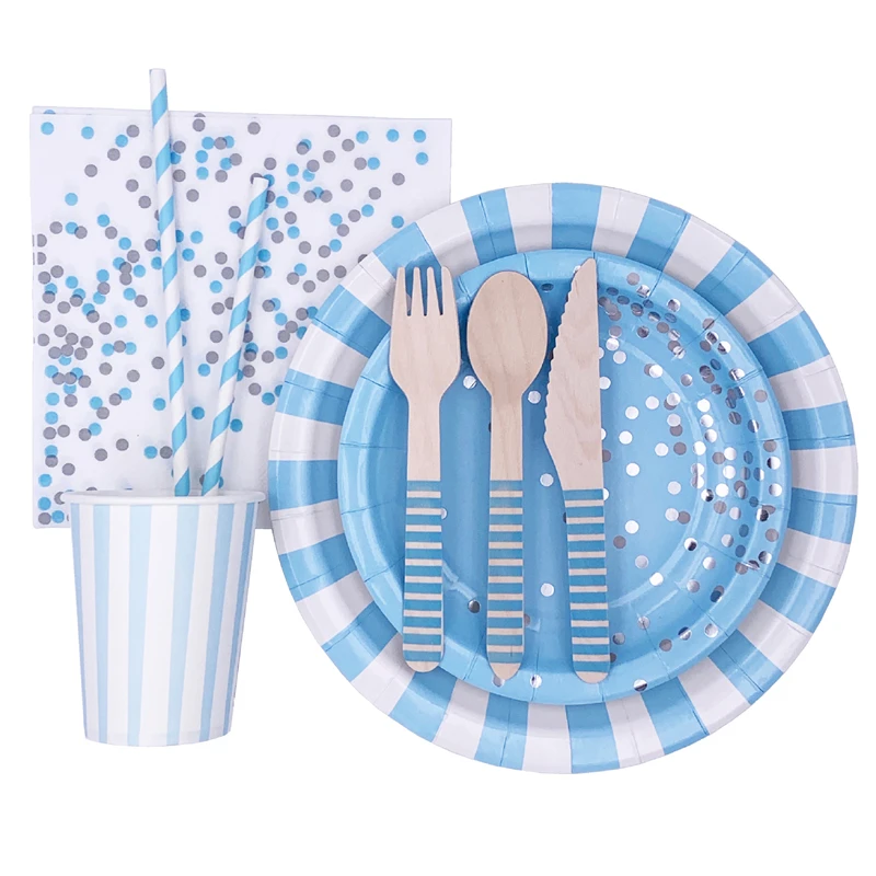 Limited Chance for 128Pcs/Set Striped Disposable Tableware Paper Plate Baby Shower Birthday Party Cake Tray Serve for 16 Person