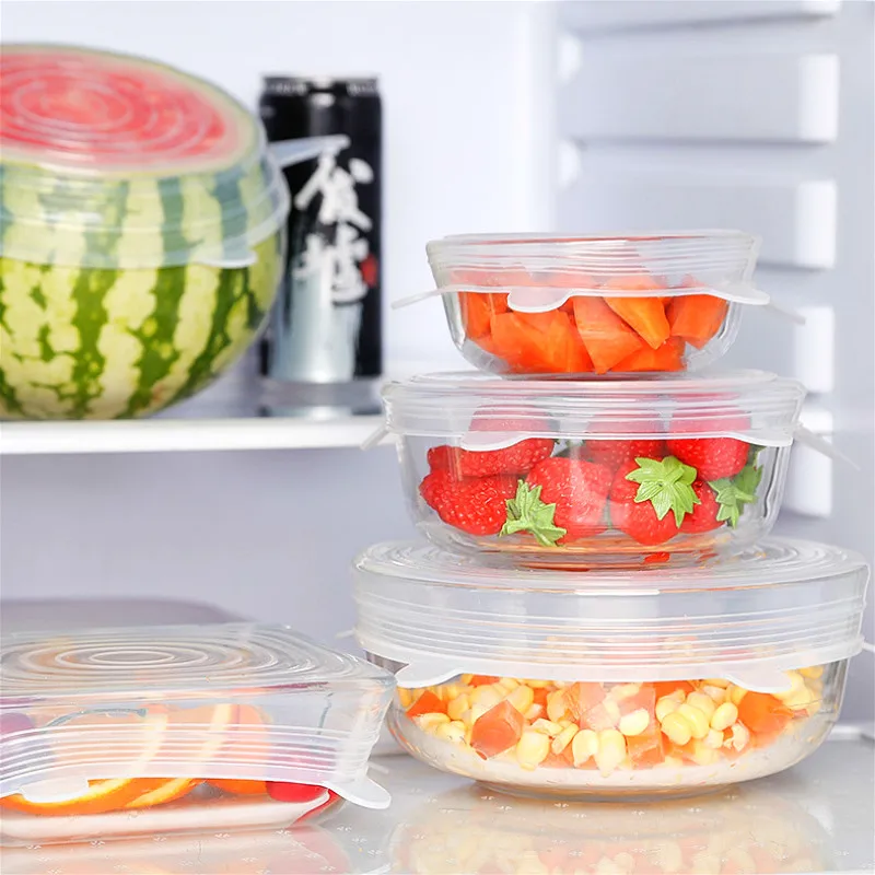 .Images of 6Pcs/Set Silicone Food Cover Universal Silicone Lids for Cookware Bowl Pot Reusable Stretch Lids Kitchen Refrigerator Fresh