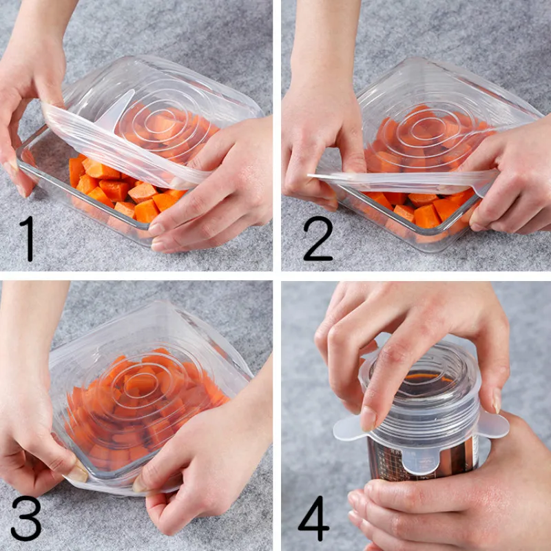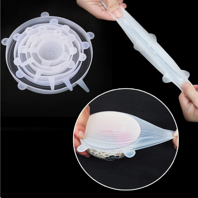 Get The Chance of 6Pcs/Set Silicone Food Cover Universal Silicone Lids for Cookware Bowl Pot Reusable Stretch Lids Kitchen Refrigerator Fresh