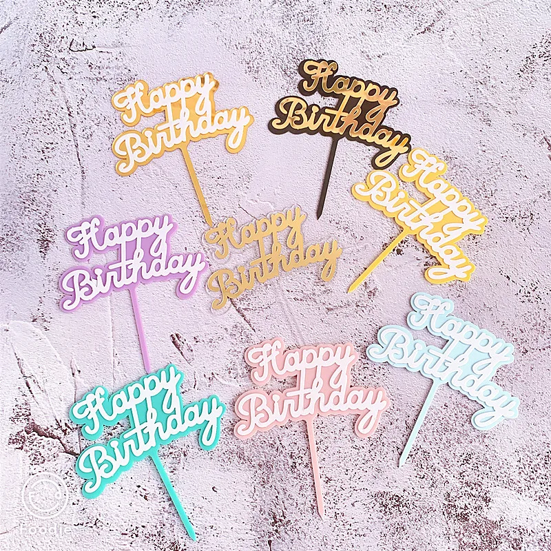 Cheap Price of Cake Decoration Candy Color Handwrite Happy Birthay Cake Toppers for Baby Shower Unicorn Cake Topper Child Birthday Cartoon