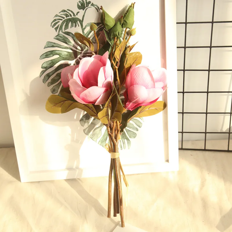 Simulation Magnolia Flowers Wedding Artificial Bouquet for Home Office Banquet Decoration