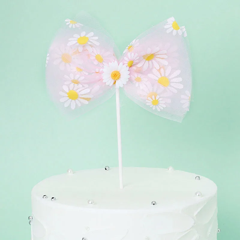 Additional Information of Cake Decoration Spring Little Girl Windmill Daisy Bow Happy Birthday Cake Toppers Lace Daisy Cupcake Toppers Birthday Supplies